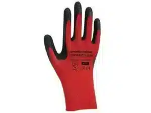 Rokavice poliester rdeča z črnim premazom vel. 10
