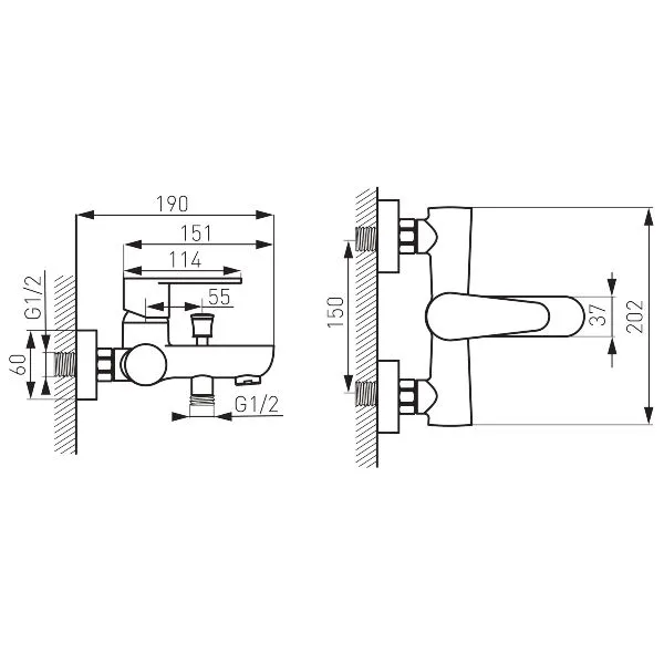 - ekscentrični razmik G½ 150 ± 20 mm
