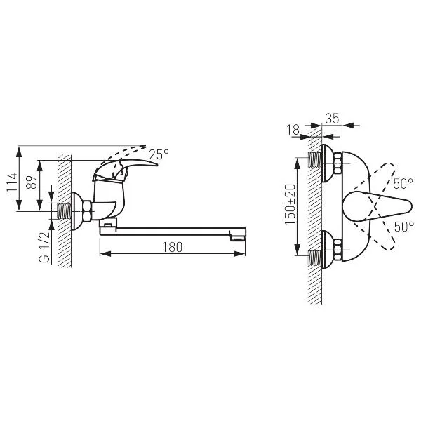 - razmik ekscentričnega priključka G1/2 150 ± 20 mm
