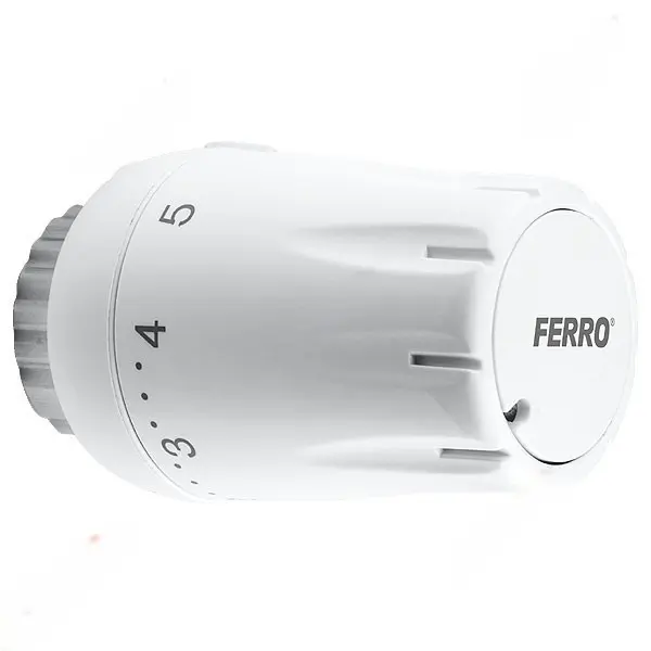 Termostatska glava znamke Ferro je naprava, ki se uporablja za nadzorovanje temperature v ogrevalnih sistemih. Povezuje se s cevjo z navojem M30 x 1,5, kar zagotavlja stabilno in zanesljivo pritrditev na ogrevalne ventile.