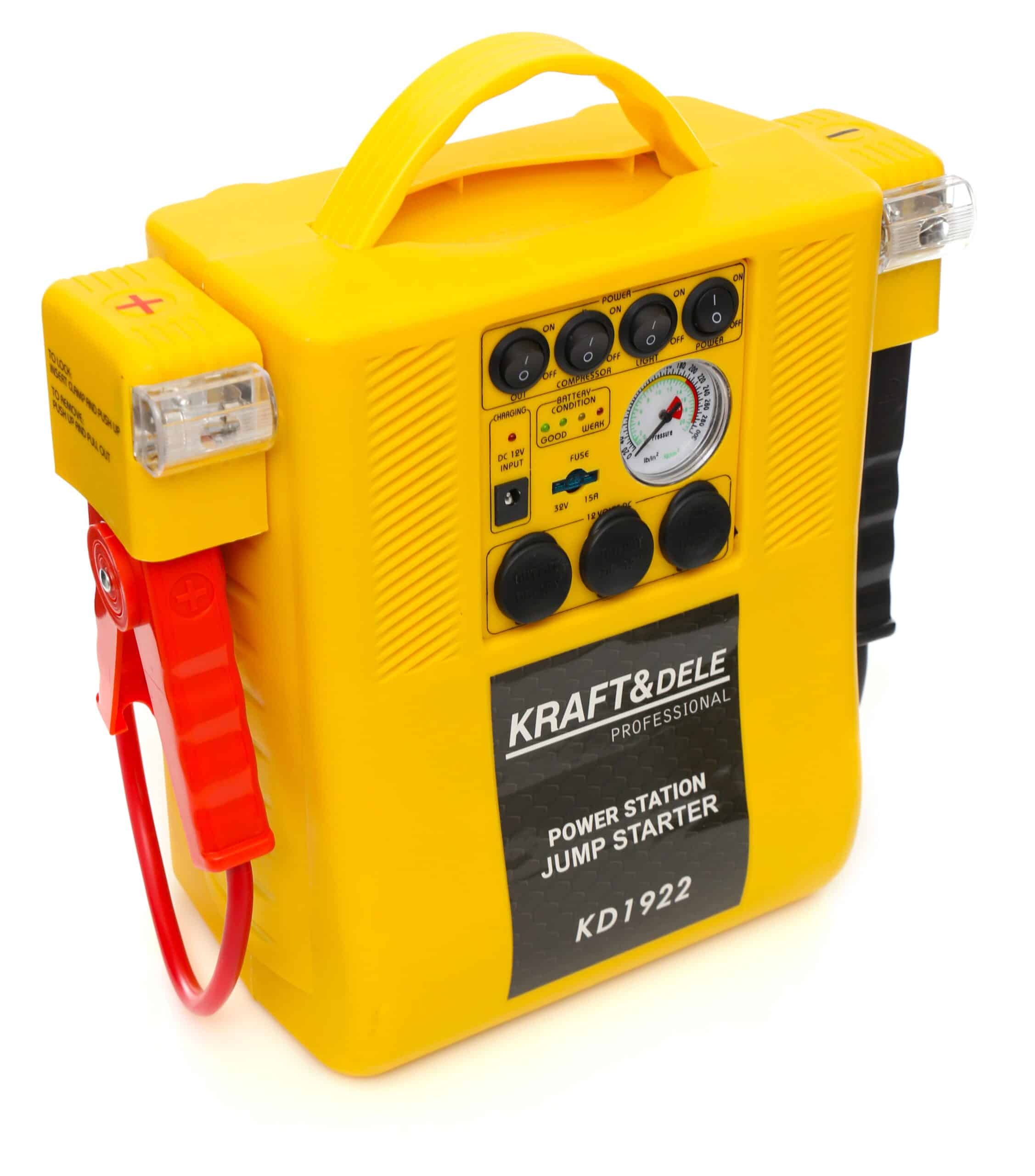 Večnamenska naprava KRAFT&DELE KD1922 je nepogrešljiv pripomoček v vsaki garaži, delavnici ali avtomobilu. Z njeno pomočjo lahko zaženete avtomobil, napolnite mobilne naprave, osvetlite okolico ter hitro in enostavno napolnite pnevmatike ali druge napihljive predmete. Zaradi kompaktne zasnove in številnih funkcij je idealna za uporabo doma ali na poti.