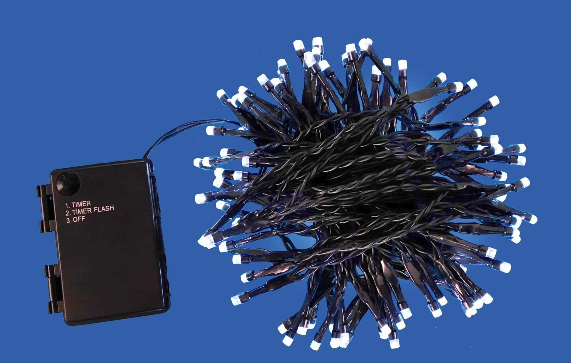 Lučke so opremljene s 3-pozicijskim stikalom, ki omogoča izbiro med stalnim svetlobnim načinom, utripanjem ali izklopom, prilagojenim vašim željam in razpoloženju. Za delovanje potrebujejo tri baterije tipa AA (niso priložene), kar omogoča popolno svobodo pri postavitvi, saj ni potrebe po vtičnici.