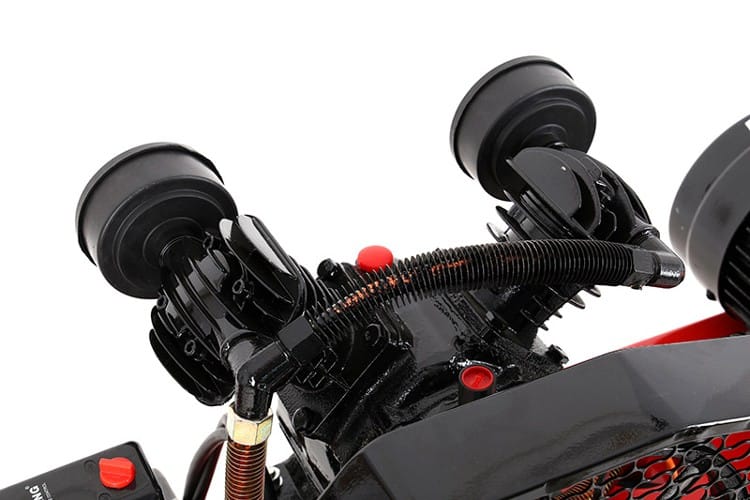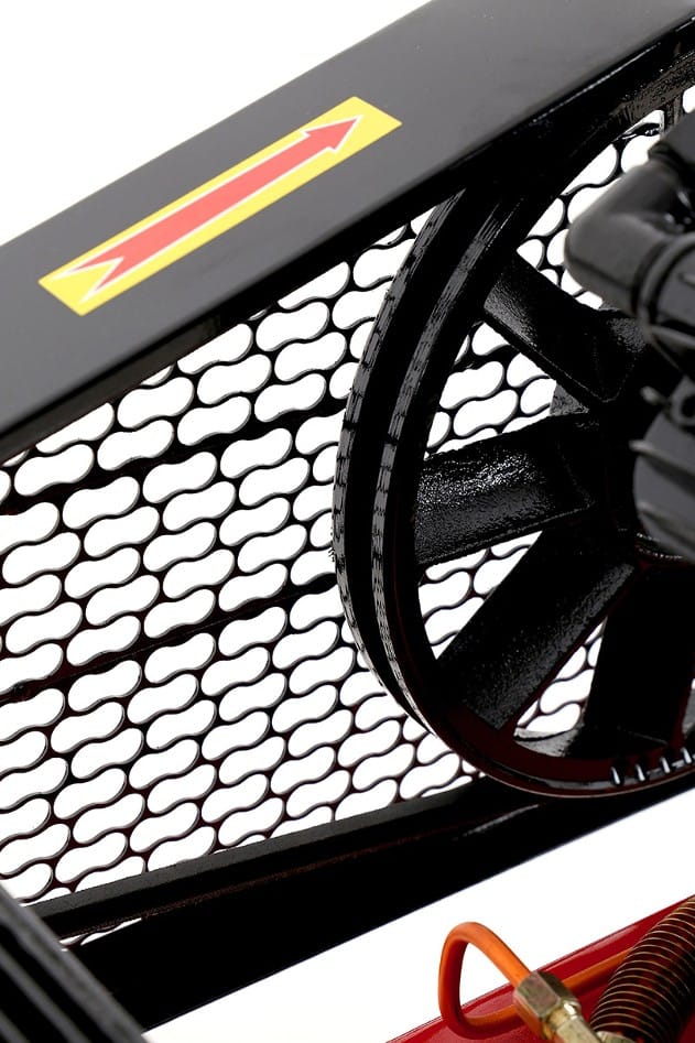Kljub svoji visoki zmogljivosti, kompresor deluje s glasnostjo 93 dB, kar omogoča uporabnikom, da se osredotočijo na naloge, ne da bi se obremenjevali z nepotrebnim hrupom. Pogon na jermene omogoča boljšo prenosenost in zanesljivost delovanja.