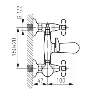 - razmik ekscentričnega priključka G1 / 2 150 ± 20 mm