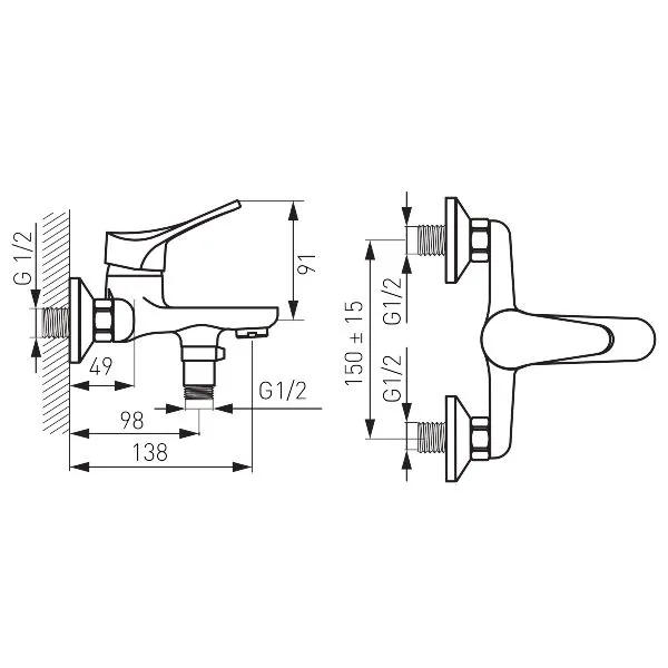 - priključek za tuš G 1/2