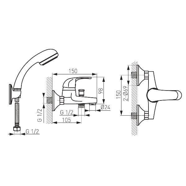 • razmik ekscentričnega priključka G1 / 2 150 ± 20 mm