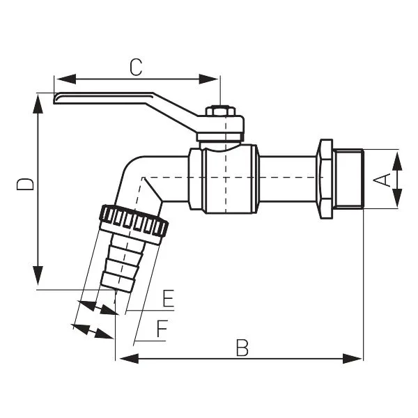 - d (mm) = 15; A= G1; B [mm] = 124; C [mm] = 98; D [mm] = 110; Ø E [mm] = 28; F = G1 1/4; Kvs [m3 / h] = 14
